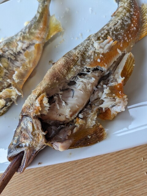 この時期は既に頭や背骨は硬くなる時期なので残す方は残しますが私はかなりの鮎ラバーですから硬くてもおかまいなしで全て余すことなく完食。