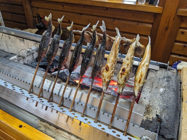 以前ずっと鮎を焼かれていたレジェンド(笑)の方は今はたまにきてチェックする側になられたそうでこの日の鮎は女性の店員さんが焼いてくださいました。