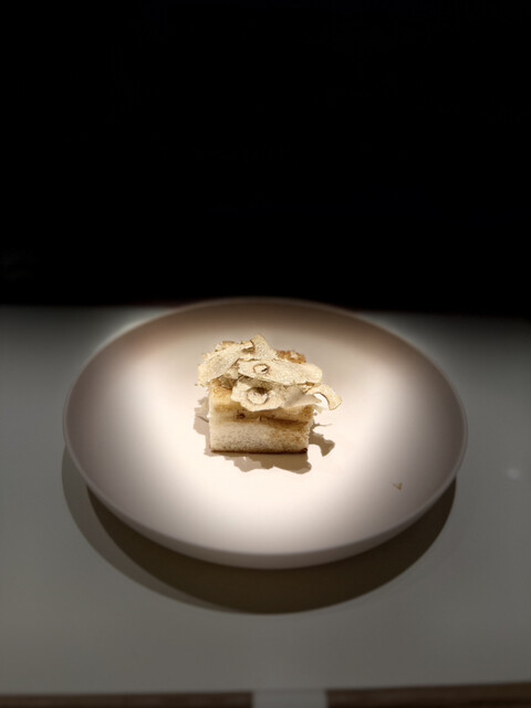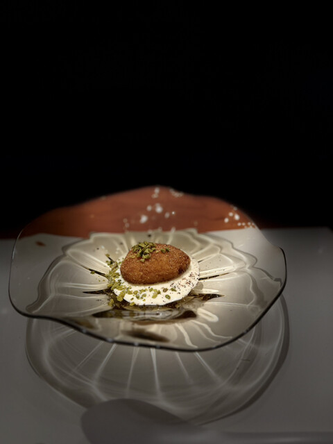 4. **松茸のフライ 北海島海老のビスクとピスタチオ**
