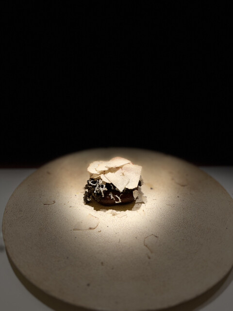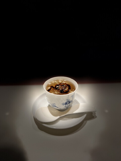 季節の贅沢を一皿に凝縮。黒鮑と毛ガニの旨味が口の中で広がり、トリュフの香りが贅沢さを引き立てます。