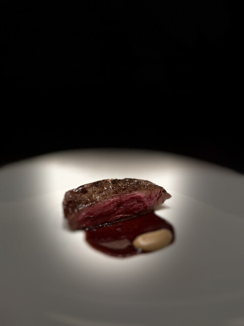 - 蝦夷鹿のロースが持つ独特の風味と柔らかさが絶妙。