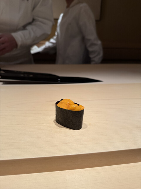 - 積丹半島産のバフンウニを使用した贅沢な軍艦巻き。ウニの濃厚な旨味と甘みが、口の中で広がり、海苔との相性も抜群。