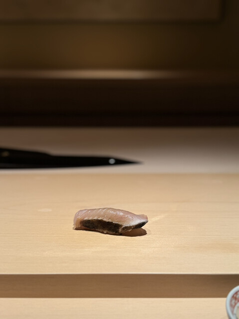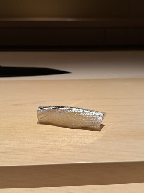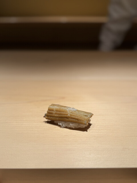 - しんこの繊細な味わいを存分に楽しめる一貫。酢飯との相性も良く、シンプルながら奥深い味わい。