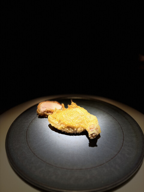 続いて、鳩のフライドチキン、レタス、メイクィーン・バターとトリュフ、そして鮎の凝縮スープと続きます。どの料理も繊細でありながら、力強い味わいが特徴です。