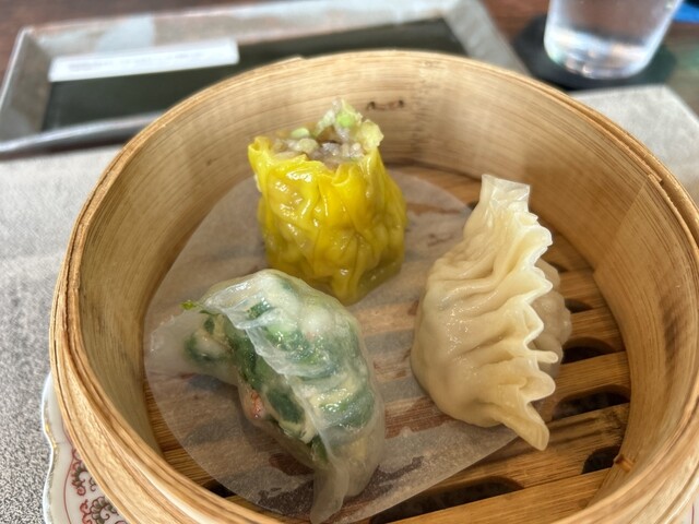 海老蒸し餃子、焼売、ふかひれ蒸し餃子