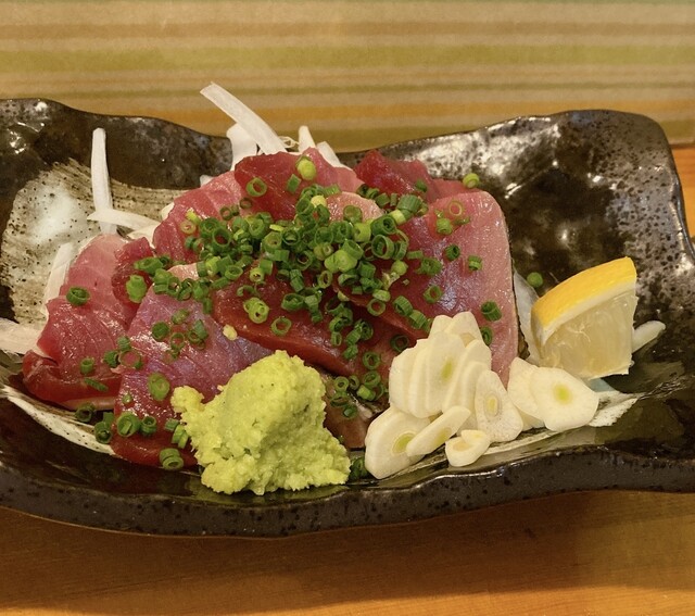 ごまさば、ヤイトガツオの炙り(この日のナンバーワン)、アジ刺、いかしゅうまい、水茄子とアボガド(醤油ベースのドレッシングがおいしい)、えびプリ、揚げ銀杏、豚軟骨の塩焼き、豚の角煮(かかってるとろろがいい)、チャーハン