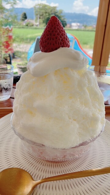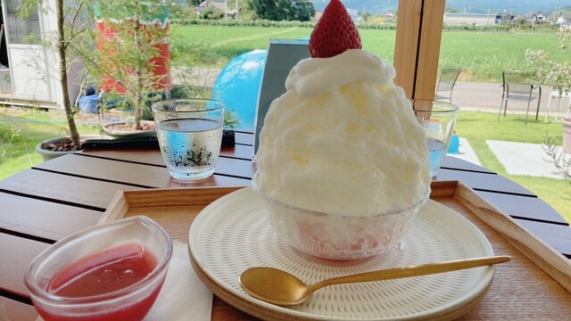 かき氷は、ふわふわの氷に果実たっぷりのシロップをかけていただきます。濃厚な苺のかき氷で美味しかったです。
