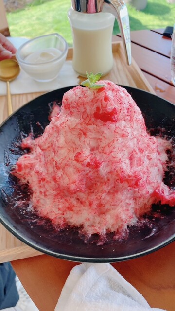 凍らせた苺を削ったかき氷は初めての食感で格別でした!