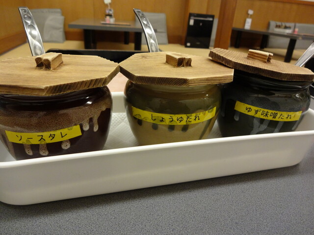 「ソースタレ」、「しょうゆタレ」、「ゆず味噌タレ」とありました