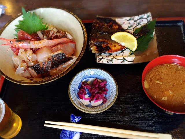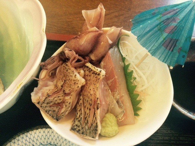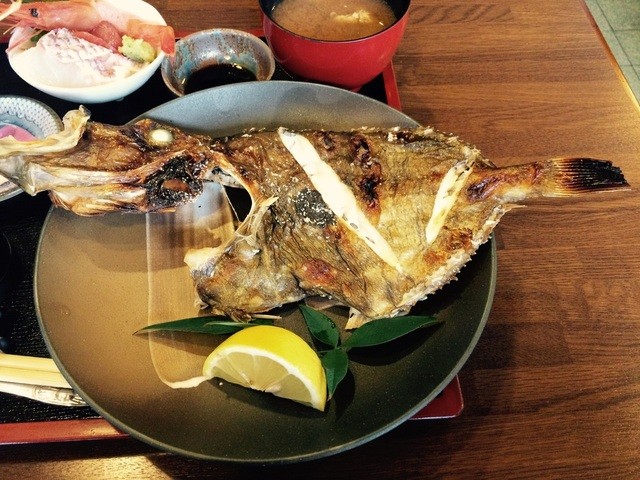 「カネタタキ」という魚で、的鯛の一種のようです。皮目がパリパリに焼けていて中の身はふっくら。淡泊ながらも旨味はじゅうぶんにあり醤油は要りませんでした!