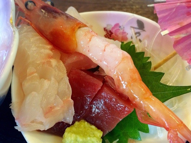 今回、煮魚御膳に付いてきたお造りは…甘エビ、鯛、マグロの3種。