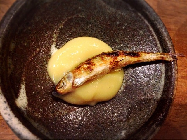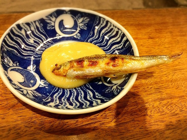 卵の黄身を混ぜ混ぜする前にまずはそのまま氷魚ちゃんをパクッ。