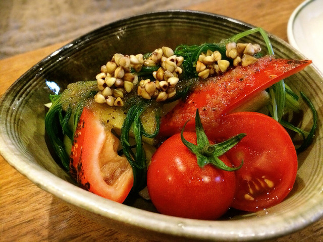 まずは野菜の煮浸しをいただきながら、喉を潤します。