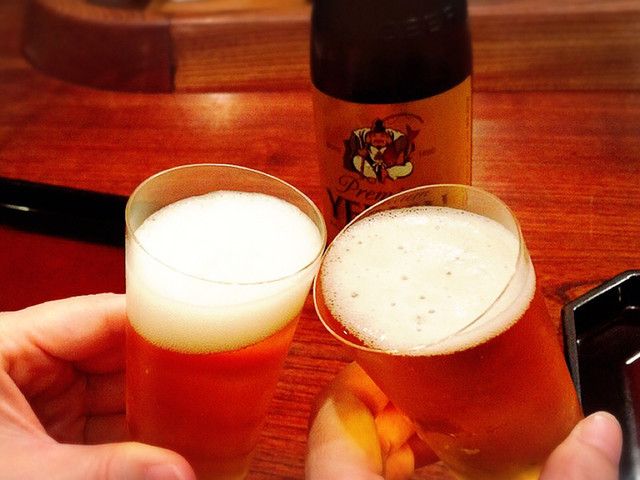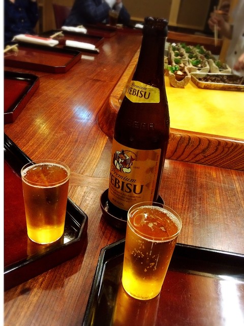 いい感じに冷えたヱビスの瓶ビールで乾杯♪