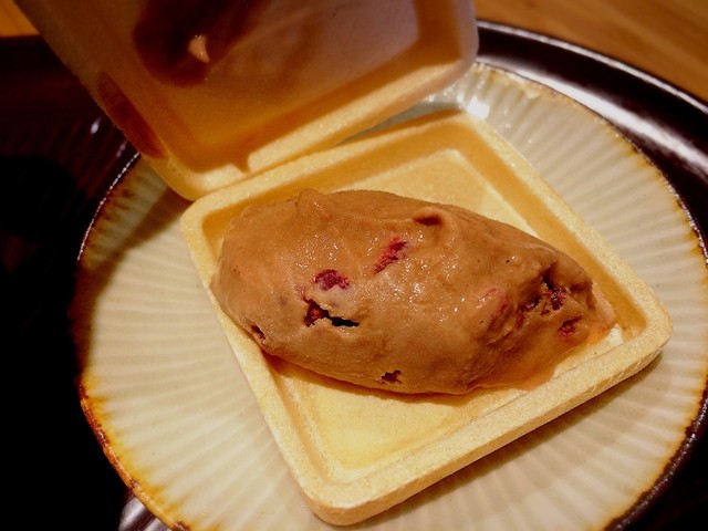 チョコレートは風味程度、ほぼラズベリーなアイスでした (・ω<)