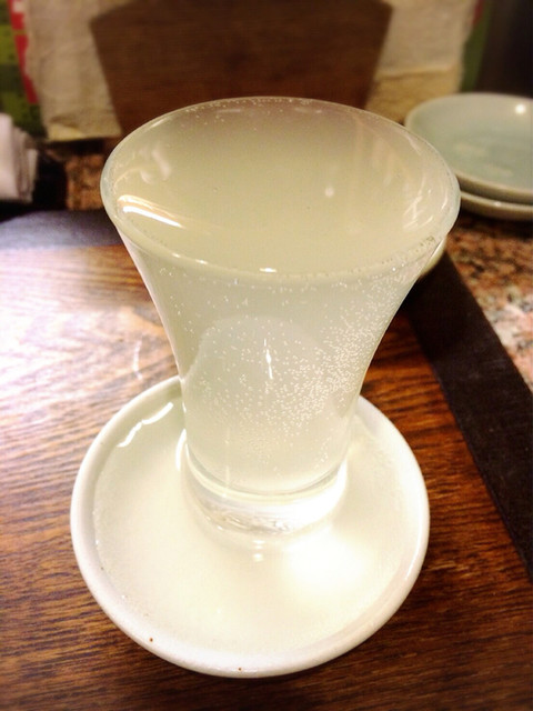 白く濁った美味しそうなお酒をなみなみとグラスに注いでいただき乾杯♪