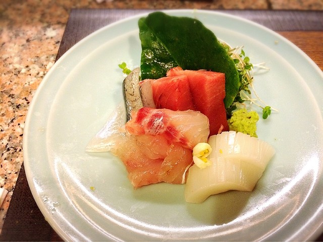 ぐじの昆布〆、紋甲いか、鯛、よこわ、さより