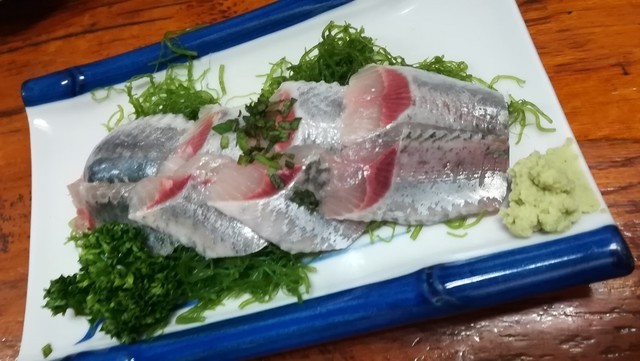 イワシ刺身は脂が載っていて美味い。