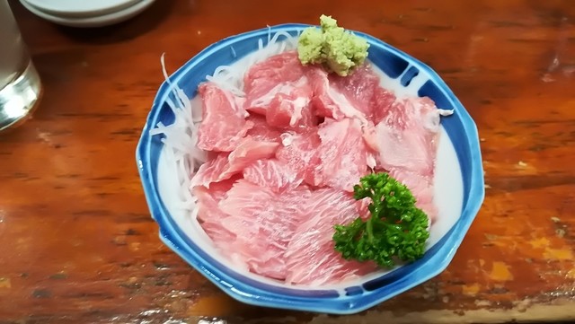 次につまみを聞かれて、大番名物『鮪中落ち』(350円)を注文。
