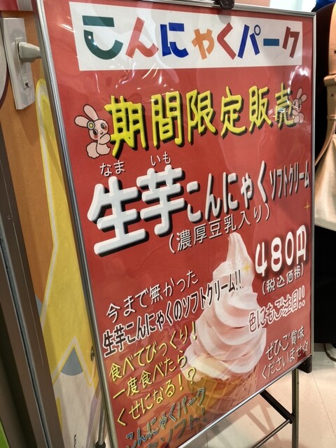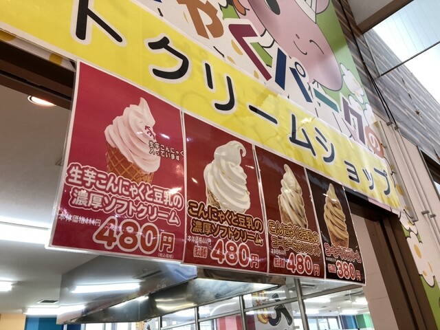 薄っすらピンク色をした生芋こんにゃくのソフトクリームを食べましたが、特に可もなく不可もなく…普通に美味しい豆乳のソフトクリームでした。