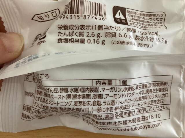 店員さんが『中に栗が丸々1個入ってます』て言ってたと思うんだけど…全然1個じゃないんだけど?半分も無いよ?と疑問に思ってしまった。