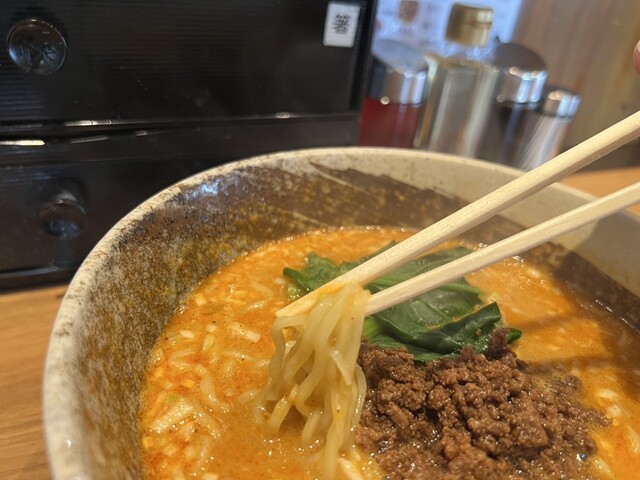 開店時間に案内され、細麺と中太麺が選べる担々麺(1,150円)を中太麺で注文。