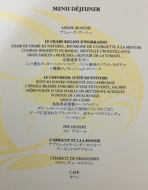 エグゼクティブシェフのオリヴィエ・シェニョン氏は、フランス料理の伝統を尊重しながらも革新的なアプローチで新たな味を創造しているとの事で、どのような食体験ができるか楽しみでした。