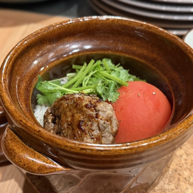 土鍋を開けた瞬間に立ち上る香りが圧倒的。ラム、トマト、パクチーの香りが重なり、混ぜるたびに表情が変わる“締めの主役”と呼びたくなる仕上がりです。