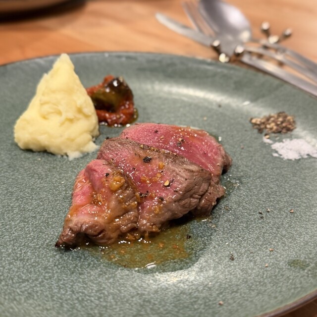 レア寄りの火入れでしっとりと柔らかく、ガーリックとバターの香りが肉の旨味に寄り添います。噛むほどに味が広がる上質な一品。