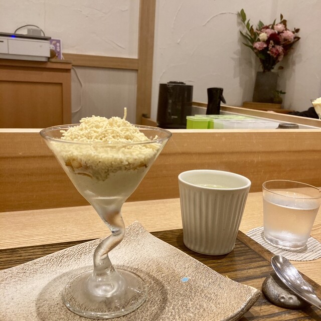 1品目は削りたての栗そぼろたっぷりパフェ。
