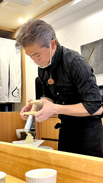 新栗の削り立てそぼろ/自家製アイス/栗蜜寒天