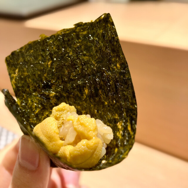 ◎贅沢手巻き/中落ち/馬糞ウニ/山女のイクラ/キャビア/金粉/芽ねぎ