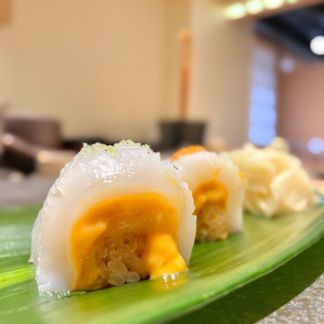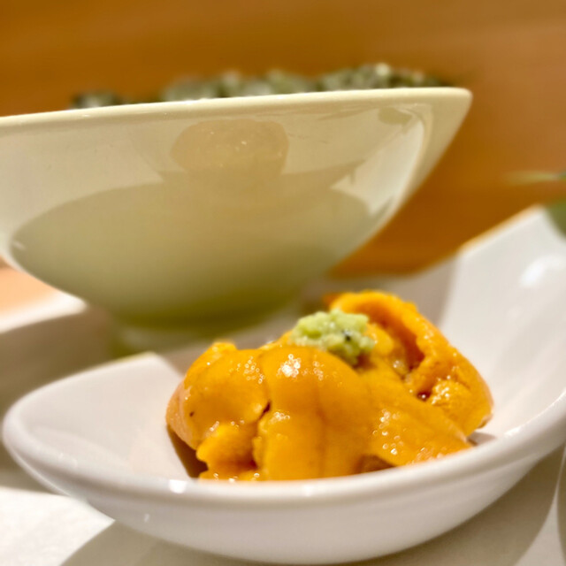 キャビアの塩気、雲丹の甘さと、一口食べるごとに味が変わって楽しい。