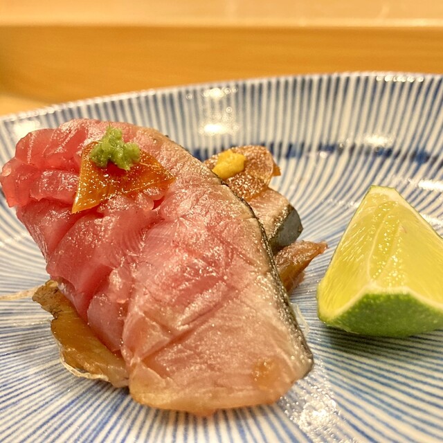 鰹はねっとり濃厚、そこに茗荷と酢橘の酸味が合う