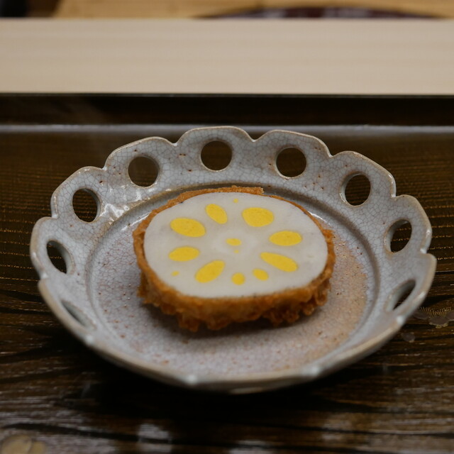 〇加賀蓮根の辛子蓮根 きな粉の衣