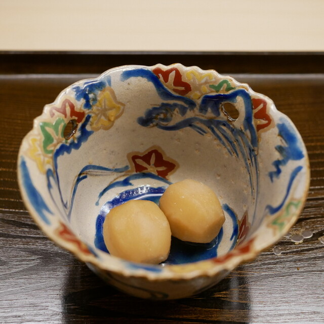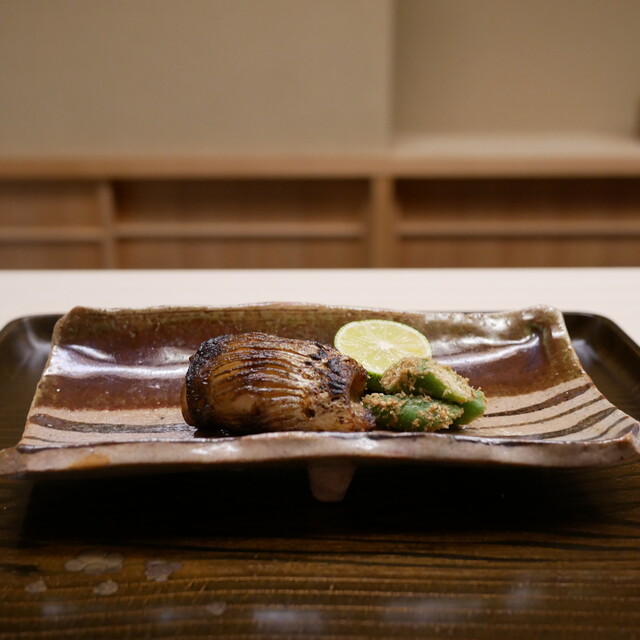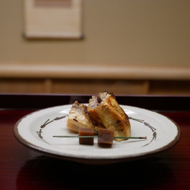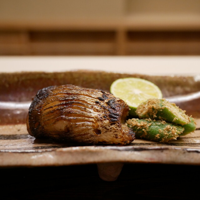 僕が食べた松茸で、人生で一番美味しいです。石川県の松茸の産地として有名な珠洲のものを朝採れの状態で提供されます。旬、真っ只中。こんなに香りも味も違うものかと毎回驚きます。そして何より焼きの卓越した技術が凄いです。