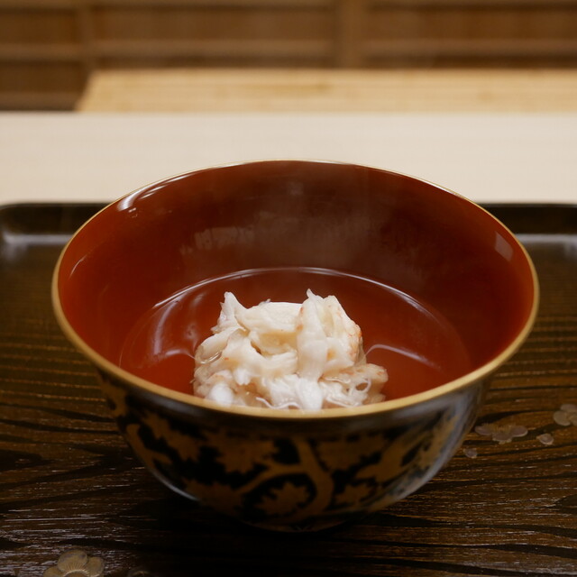 紅ズワイと珠洲松茸のお椀も最高でした。香り、味、余韻などお椀の最高峰だと思います。