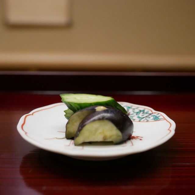 『デラウェアみぞれ和え ずんだ白和え ズイキの胡麻酢和え』各々タイプや食感が違う和え物は食べていてホッコリしました。しかもお盆時期をダイレクトに伝えてくれる器として「ほおずき」を使ったのも良かったです。