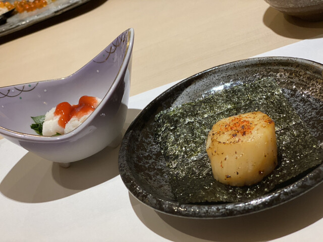 肉厚ホタテのを海苔に巻いて!美味しい。
