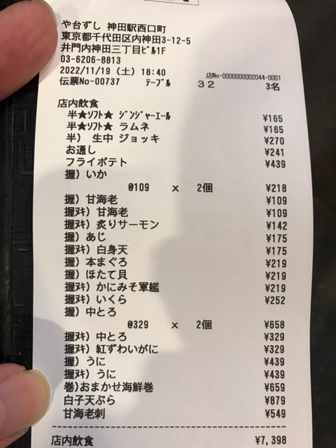 寿司職人さんが、握ってくれて、形がよく行く回転寿司のところと違ってやはりいい。