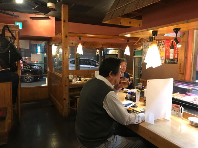 土曜17:15- 予約。店は満員。テーブル6つで、他はカウンター