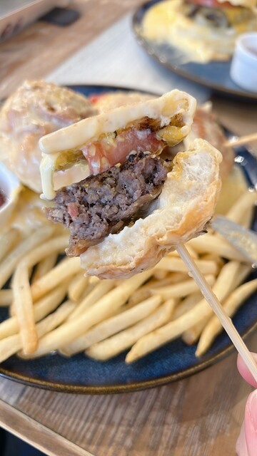 特製バターチーズソースがたっぷりかかったハンバーガーなの。想像以上に大きくて、ボリューム満点!バンズがふわふわで肉肉しいチーズバーガーでした。