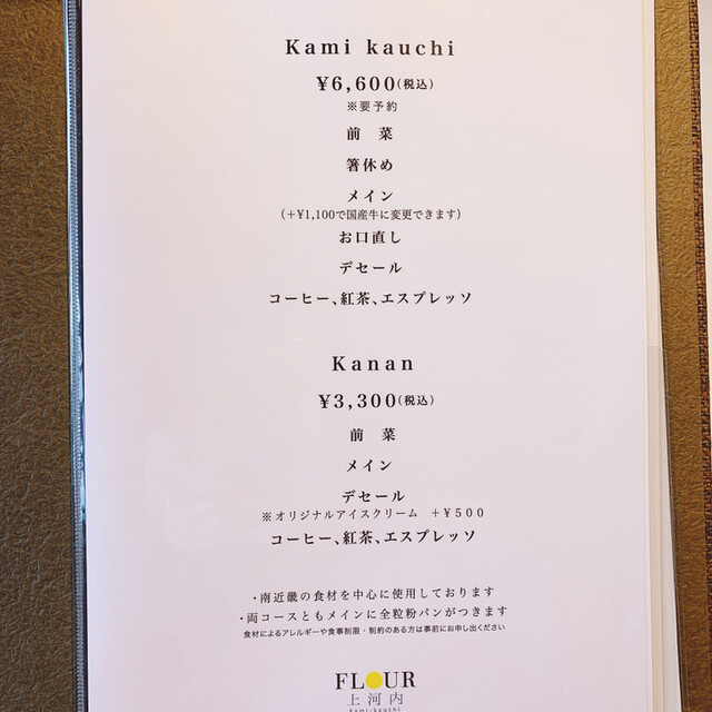 ・Kami kauchi (前菜、箸休め、パン、メイン、お口直し、デセール、ドリンク)…6600円