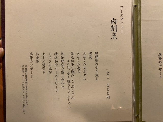 今回いただいたのは、肉割烹コースーしゃぶしゃぶー…21500円。