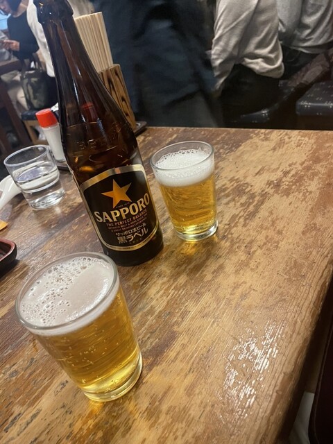 通常のお昼利用される方も多い中で、我々と同じような発想で飲みに来る常連さんも多く、店内はプチカオスくらいお忙しそうで、我々も他のお客さんと相席になりました。