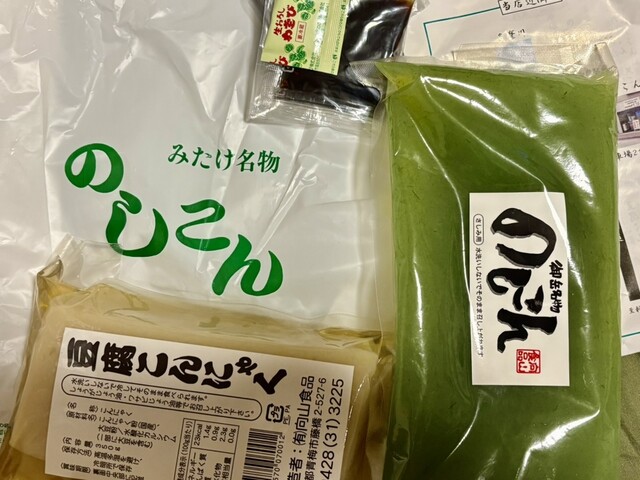 店内はテイクアウトののしこんや豆腐こんにゃくがなどが売っています。のしこんはいろんな種類があり試食させてもらえます。私は青のりののしこんが美味しくてそちらと、豆腐こんにゃくを購入。タレとわさびを付けてもらえます。家で食べたらぷるっとしていてとっても美味しい!名物ののしこんは流石の美味しさです♪また近くに来たら買いたいです。