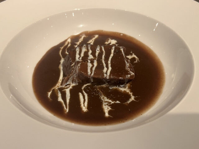 タンシチューは適度な柔らかさと少し濃いめのスープか美味しく。スープはパンにつけるとちょうどいいです。意外にもチョコのパンが合います。
