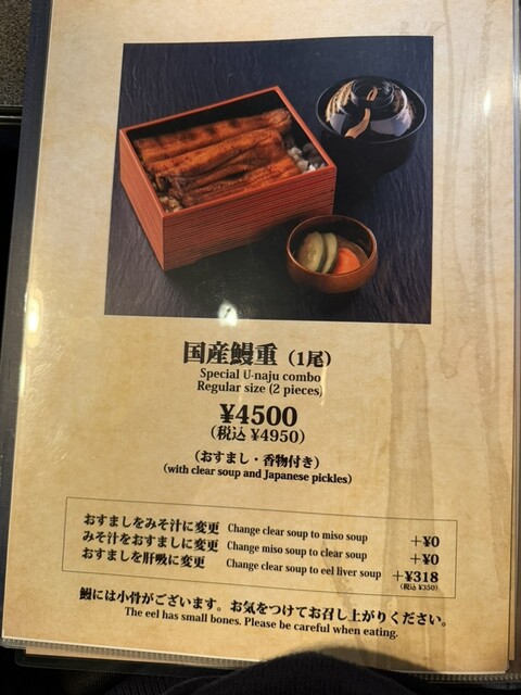 いよいよ本番の国産鰻重です。表面は少し焦げがあり、それがいい香りです。身はもちろんふわふわで、これは美味い!!山椒も程よくでペロリです♪