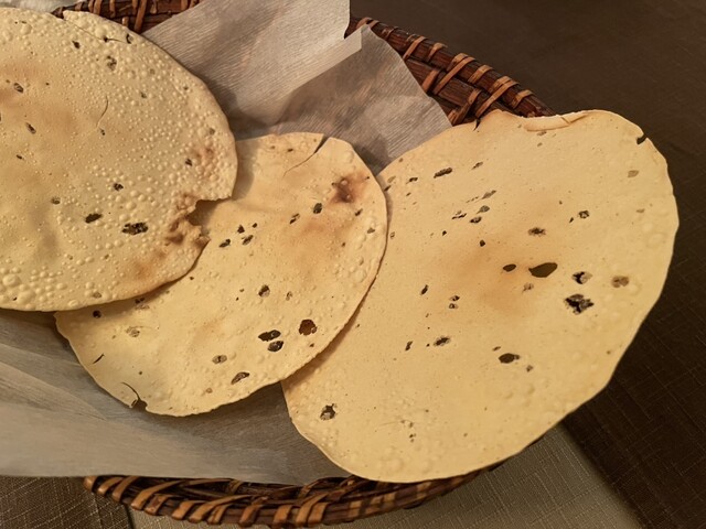 麦のナンは、焼き立てで熱々
