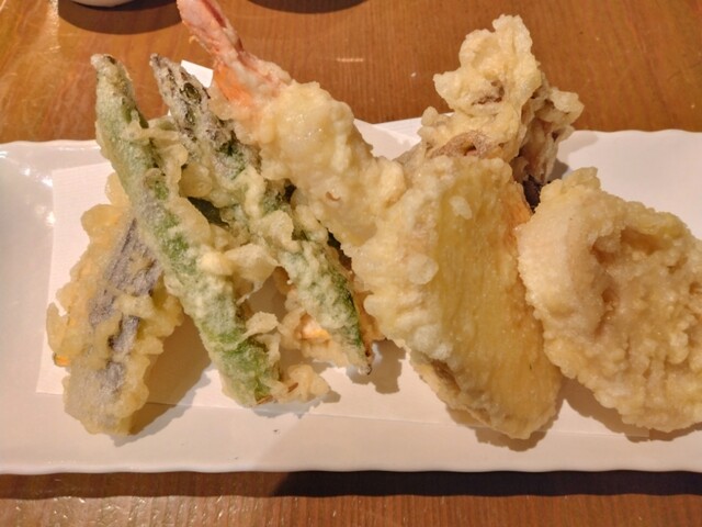 201707おまかせ。海老が品切なため、最初は残念がるも、それを払拭するほどの技術、味。天ぷらの印象がガラッと変わる。特に、うに、キス、さつまいもは絶品。さすがに、さつまいもは一人では大きい。値段も飲...